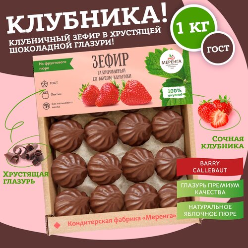 Зефир глазированный со вкусом клубники 1 кг/ Воздушный зефир / клубника в шоколаде /