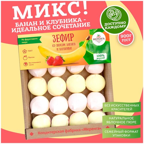 Зефир со вкусом банана и клубники Семейный формат 0,9 кг / Меренга / Классический зефир