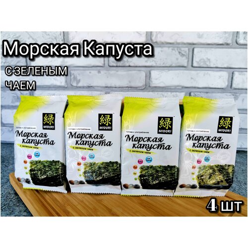 Морская капуста жареная с Зеленым Чаем Мидори 4 шт. по 5г/Чипсы нори /Жареные водоросли нори /Нори со вкусом