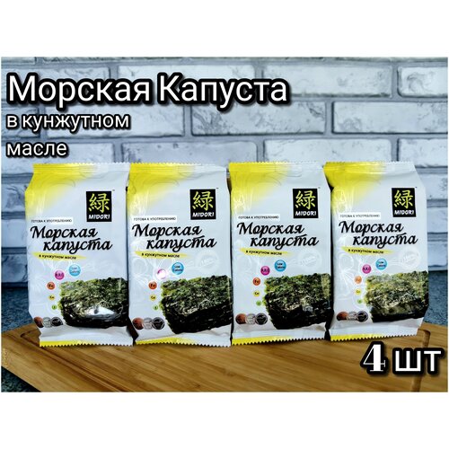 Морская капуста жареная в кунжутном масле Мидори 4 шт. по 5 гр. /Чипсы нори/Жареные водоросли нори /Нори со вкусом