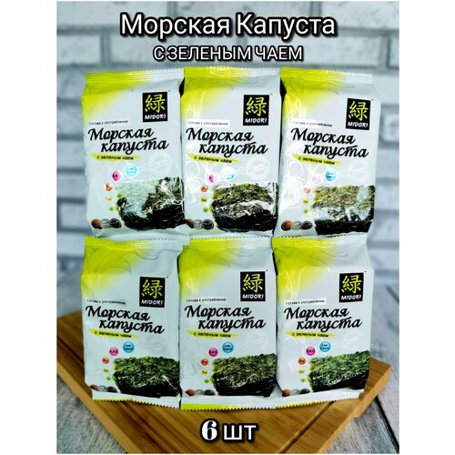 Морская капуста жареная с Зеленым Чаем Мидори 6 шт. по 5г/Чипсы нори /Жареные водоросли нори /Нори со вкусом
