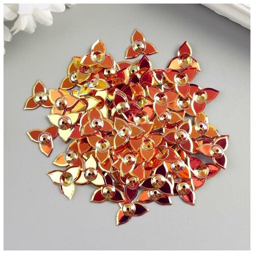 Декор для творчества "Трилистник" золото-красный 14 мм 20 гр