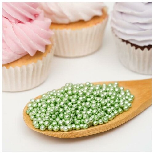 Кондитерская посыпка шарики 4 мм, зелёный хром, 50 г