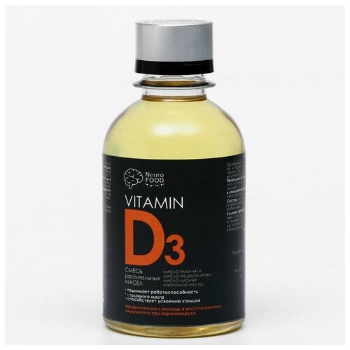 Масло растительное с витамином D3 и маслом гриба Чаги, Neurofood, пластик, 200 мл