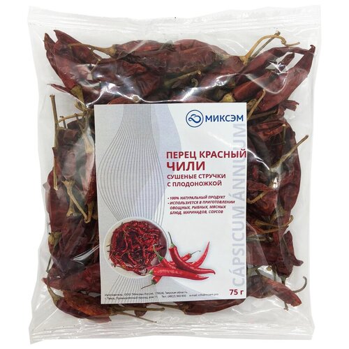 Миксэм Перец красный Чили сушеные стручки с плодоножкой, 75 г