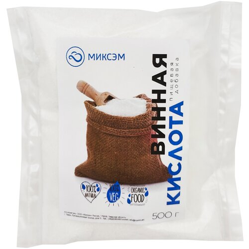 Миксэм/ Винная кислота пищевая, 500 г/ E334/ Антиоксидант/ Пищевая добавка/ Регулятор кислотности