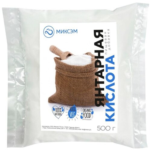Миксэм/ Янтарная кислота/ Карбоновая кислота/ Е363/ Пищевая добавка/ Регулятор кислотности/ Антиоксидант, 500 г