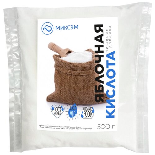 Миксэм/ Яблочная кислота/ Оксиянтарная кислота/ Е296/ Пищевая добавка/ Регулятор кислотности/ Консервант, 500 г.