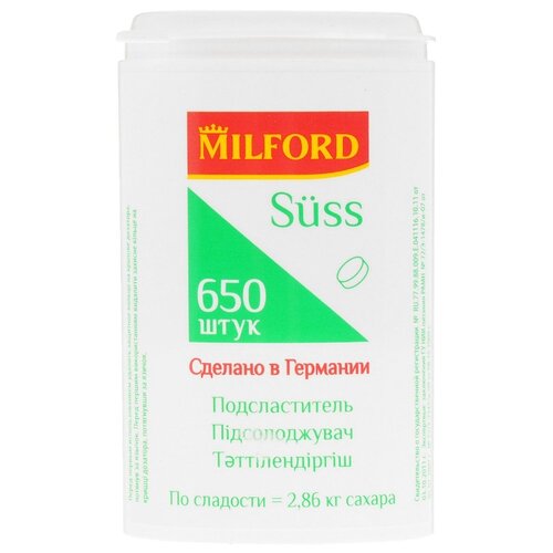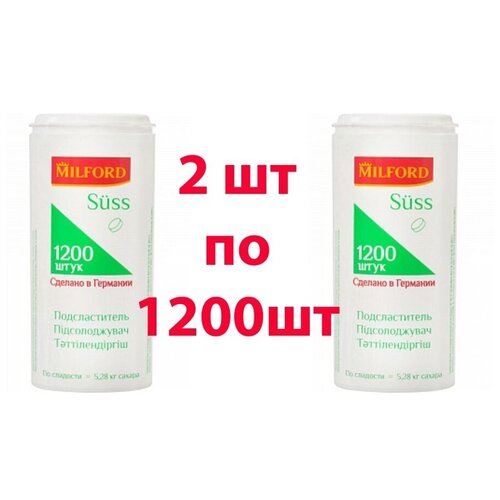 Заменитель сахара MILFORD "Suss" 1200 таблеток, пластиковая баночка с дозатором (2 штуки), сахарозаменитель, сахарозаменитель в таблетках, заменитель сахара, подсластитель столовый таблетки
