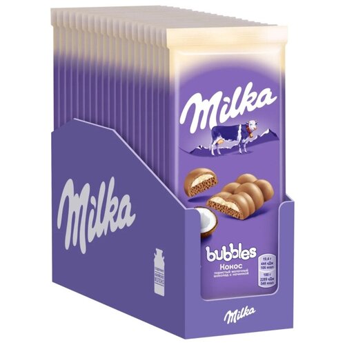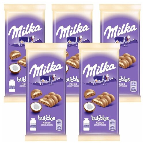MILKA BUBBLES шоколад молочный пористый с кокосом 92г Набор по 5шт