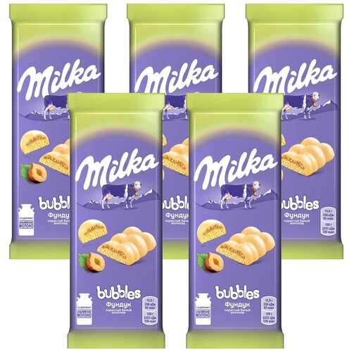 MILKA BUBBLES шоколад белый пористый c дробленым орехом 79г Набор по 5шт