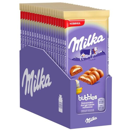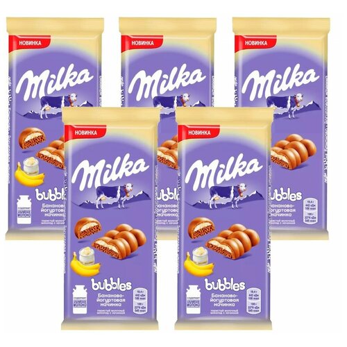 MILKA BUBBLES шоколад молочный пористый банан йогурт 92г Набор по 5шт