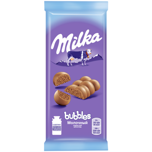 MILKA BUBBLES Молочный шоколад, Пористый, Классический, Флоу-пак, 76гр.