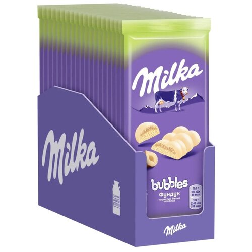 Milka Bubbles Милка пористый белый шоколад Фундук, 16 шт по 79 г