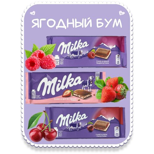Milka 3 вида шоколада Milka Милка Raspberry Cream 100г, Cherry Cream 100г, Strawberry Yoghurt 100г. Европа