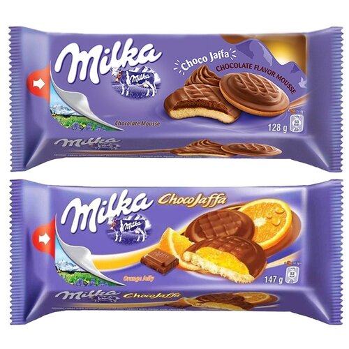 Набор печенья в шоколаде Milka Choco Jaffa из Orange с апельсиновой желейной начинкой 147 гр. + Chocolate Mousse с начинкой какао мусс 128 гр. (2 шт)