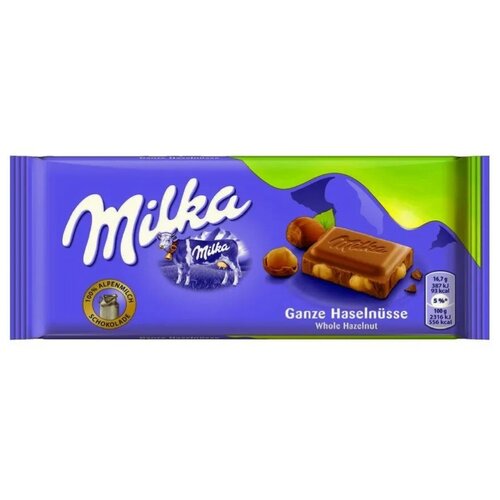 Молочный шоколад Milka Whole Hazelnut (с цельным лесным орехом) 100 гр. (3 шт)