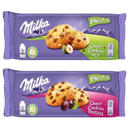 Печенье Milka Choco Cookies Raisins с изюмом 135 гр. + Nuts с орехом 135 гр. (2 шт)