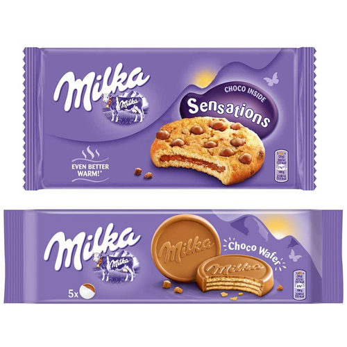 Печенье Milka Sensations choco inside с возможностью разогрева 156 гр. + Вафли Milka Choco Wafer в молочном шоколаде 150 гр.