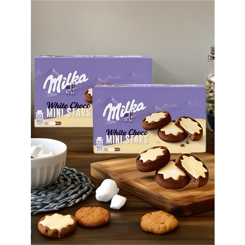 Печенье шоколадное Milka Choco Mini Stars White/ Милка Чоко Минис белым шоколадом, 150г. х 2 шт (Германия)