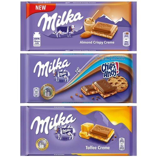 Шоколад Milka Almond Crispy Creme + Chips Ahoy + Caramel Creme (3 шт)