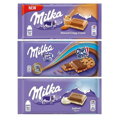Шоколад Milka Almond Crispy Creme + Chips Ahoy + Joghurt (3 шт)