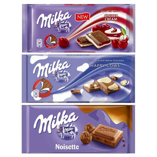 Шоколад Milka Cherry Cream + Happy Cow + Noisette (3 шт)