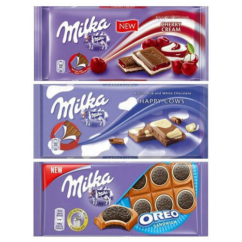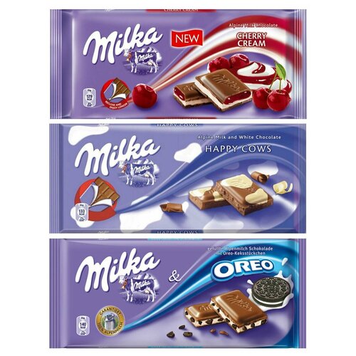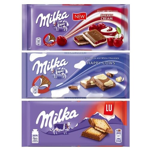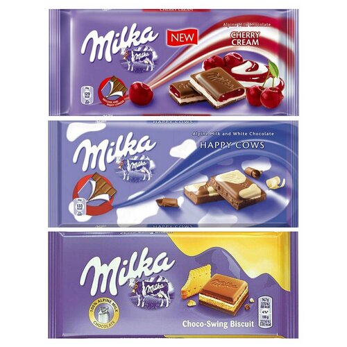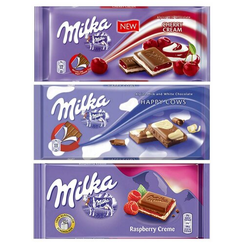 Шоколад Milka Cherry Cream + Happy Cow + Cream & Biscuit (3 шт)