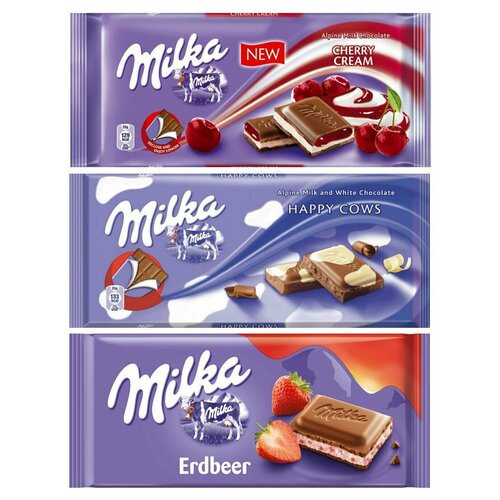 Шоколад Milka Cherry Cream + Happy Cow + Extra Cocoa (3 шт)