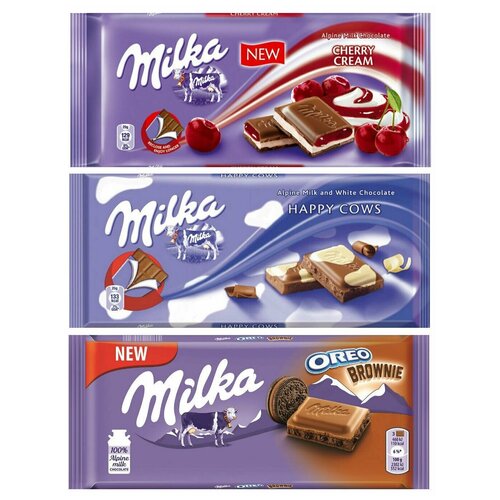 Шоколад Milka Cherry Cream + Happy Cow + Oreo Brownie (3 шт)