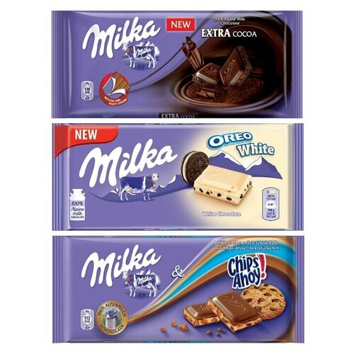 Шоколад Milka Extra Cocoa + Oreo White + Chips Ahoy (3 шт)