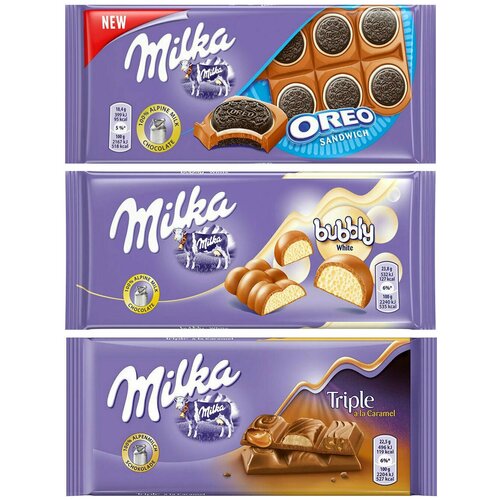 Шоколад Milka Oreo Sandwich + White Bubbly + Triple Caramel (3 шт)