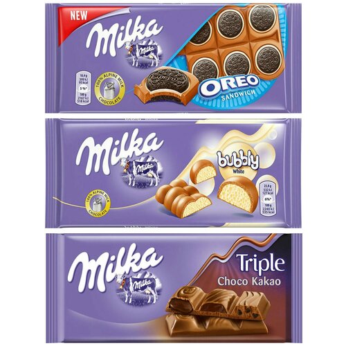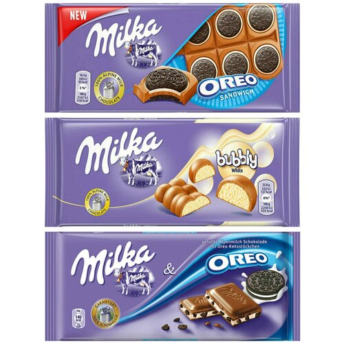 Шоколад Milka Oreo Sandwich + White Bubbly + Triple Cocoa (3 шт)