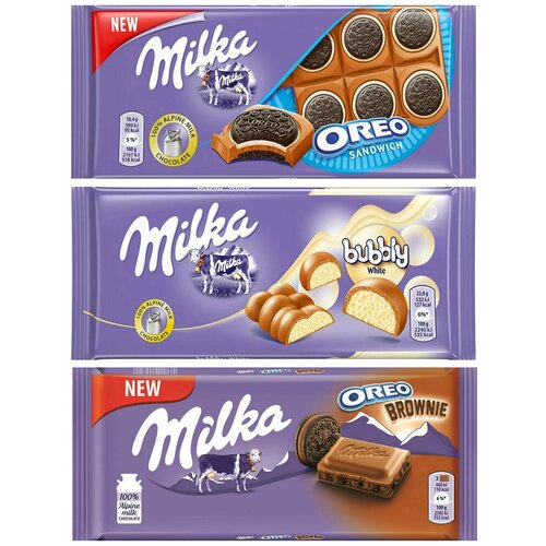 Шоколад Milka Oreo Sandwich + White Bubbly + Oreo Brownie (3 шт)