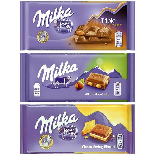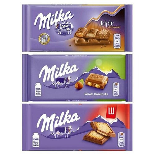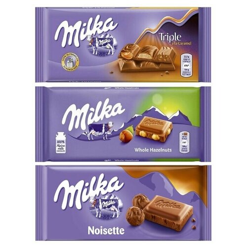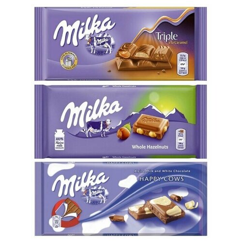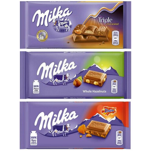 Шоколад Milka Triple Caramel + Whole Hazelnut + Happy Cow (3 шт)
