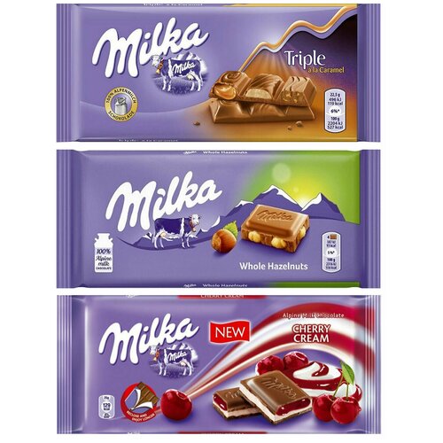Шоколад Milka Triple Caramel + Whole Hazelnut + Cherry Cream (3 шт)
