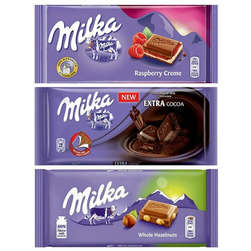 Шоколад Milka Raspberry Creme + Extra Cocoa + Whole Hazelnut (3 шт)