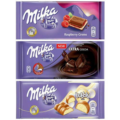 Шоколад Milka Raspberry Creme + Extra Cocoa + White Bubbly (3 шт)