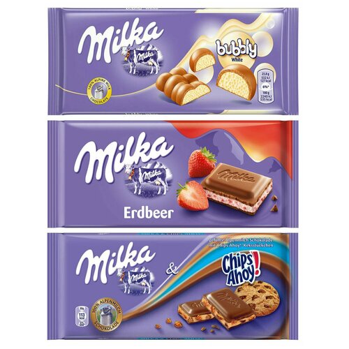 Шоколад Milka White Bubbly + Strawberry + Chips Ahoy (3 шт)