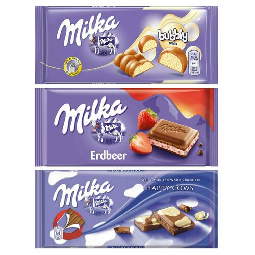 Шоколад Milka White Bubbly + Strawberry + Happy Cow (3 шт)
