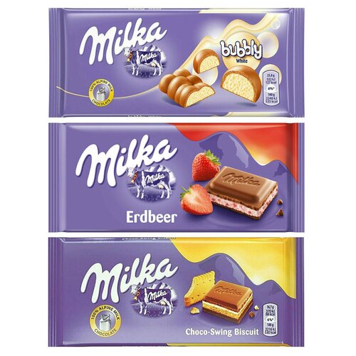Шоколад Milka White Bubbly + Strawberry + Extra Cocoa (3 шт)