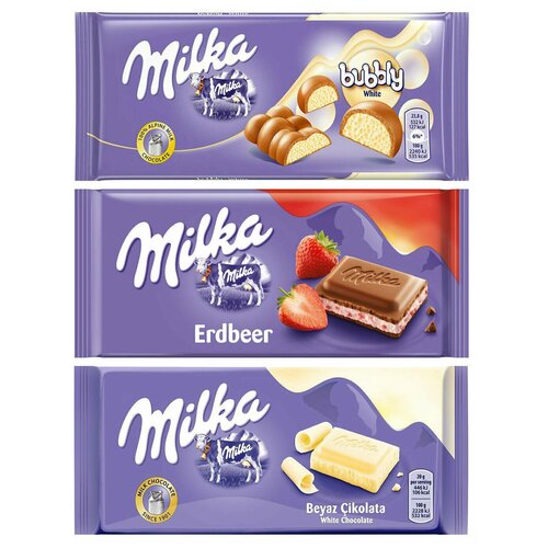 Шоколад Milka White Bubbly + Strawberry + Triple Cocoa (3 шт)