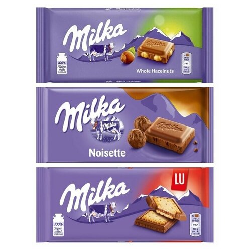 Шоколад Milka Whole Hazelnut + Noisette + Happy Cow (3 шт)