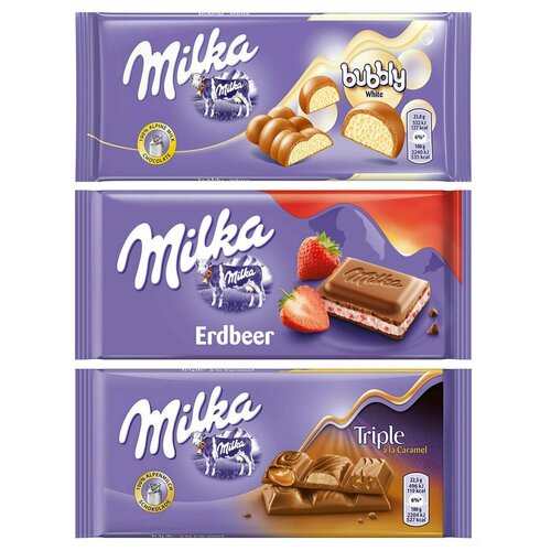 Шоколад Milka White Bubbly + Strawberry + Triple Caramel (3 шт)