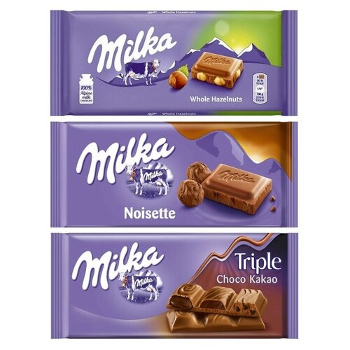 Шоколад Milka Whole Hazelnut + Noisette + Triple Cocoa (3 шт)