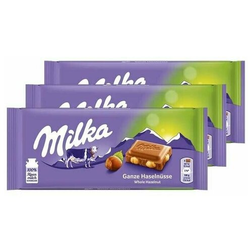 Шоколад Milka Whole Hazelnuts с цельным фундуком (Германия), 100 г (3 шт)
