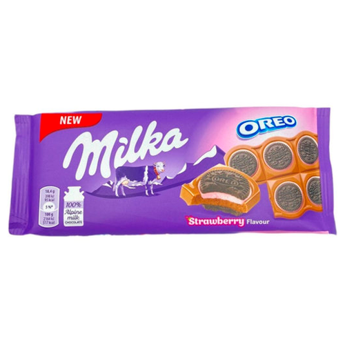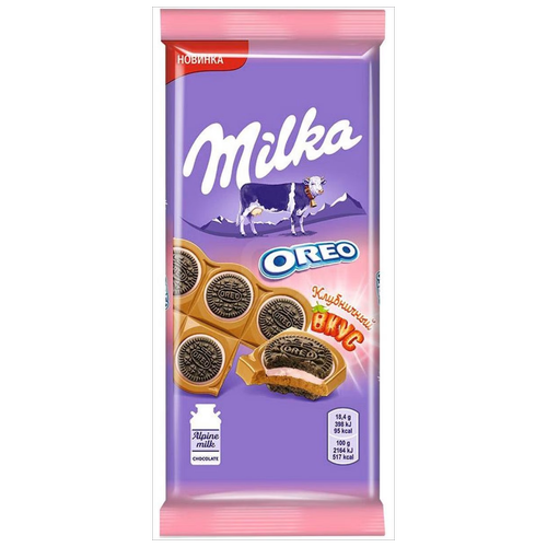 Шоколад молочный Milka с печеньем Oreo со вкусом клубники 92 гр