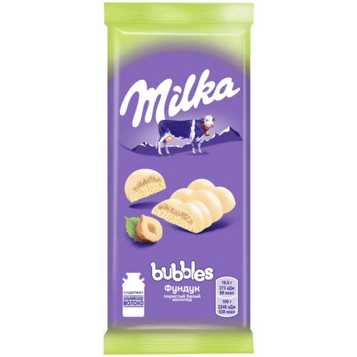 Шоколад белый пористый "Milka Bubbles" c дробленым орехом, 79г