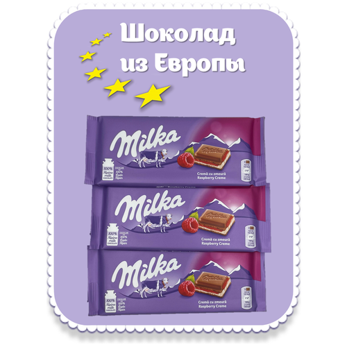 Шоколад молочный Milka (Милка) Raspberry Cream Chocolate, 100 г — 3 шт.