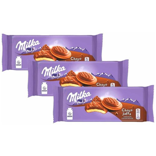Бисквитное печенье в шоколаде Milka Choco Jaffa Chocolate Mousse с начинкой какао мусс, европейские детские сладости, сладкий десерт (3 шт. по 128 гр)